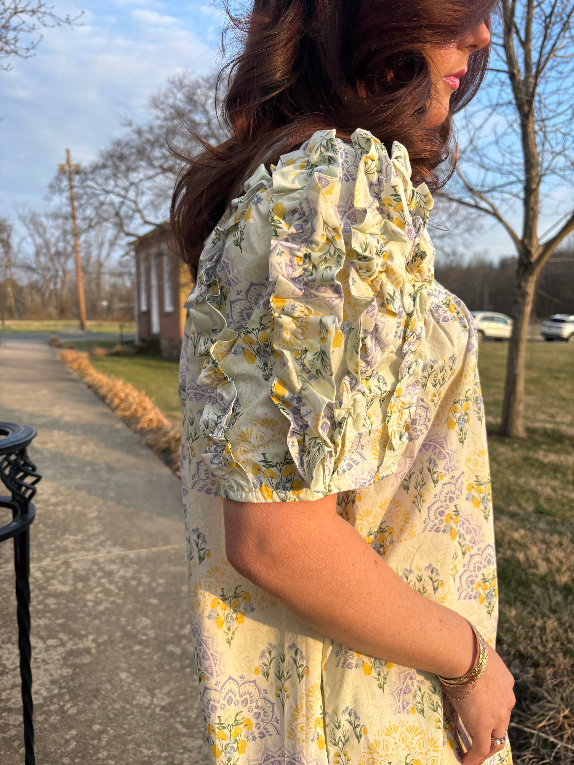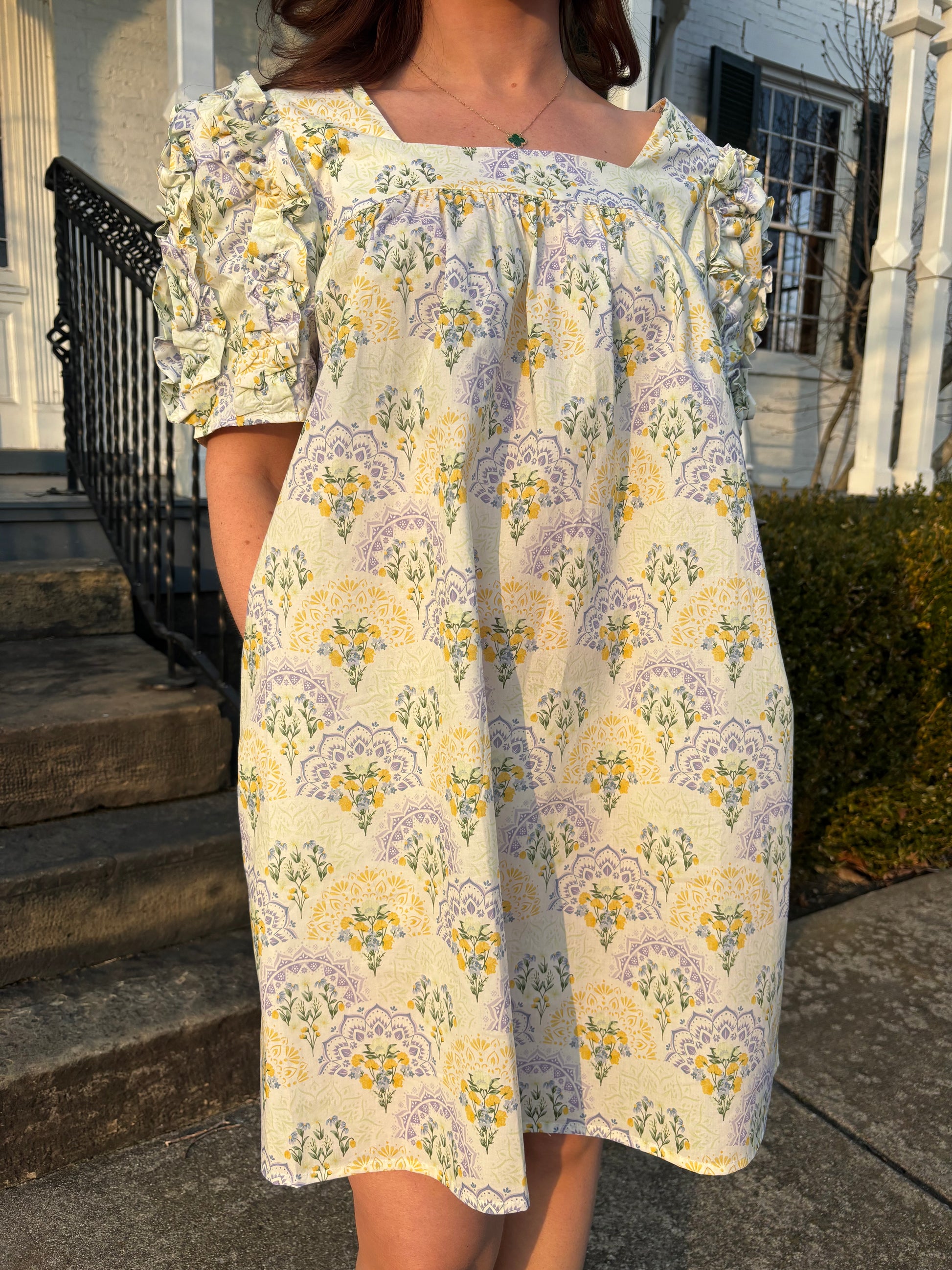 Indulge in dreamy vibes with our Lavender Sunrise Dress! This printed mini dress features a square neck and ruffle-accented puff sleeves for a touch of whimsy. Perfect for any occasion, this dress effortlessly combines style and comfort. Elevate your wardrobe and embrace the beauty of a sunrise with this dress.
