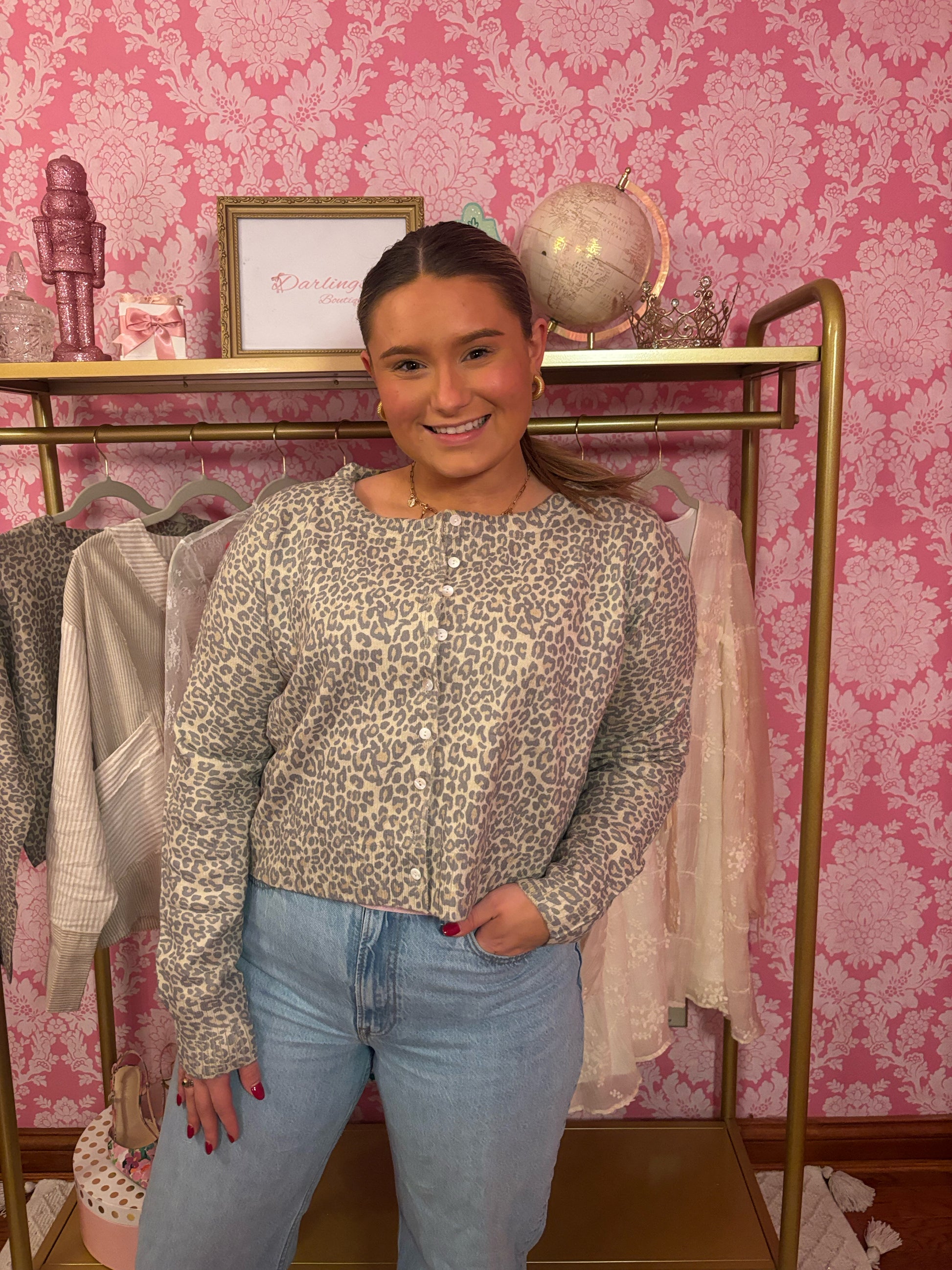 Bring out your wild side with our Leopard Print Cardigan! This vintage-inspired piece features a stunning two-tone leopard print and a classic button-up design. Perfect for adding a touch of edgy sophistication to any outfit. Elevate your wardrobe with this must-have staple.